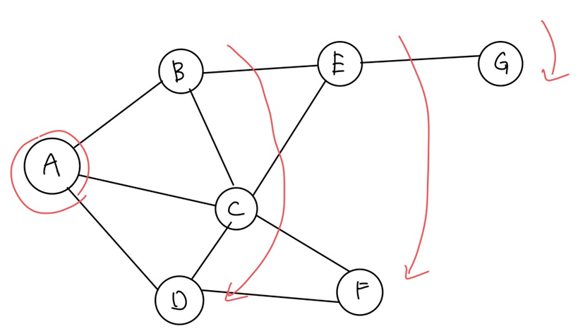 DFS도 위 Graph Traversal을 진행하면 아래와 같다.