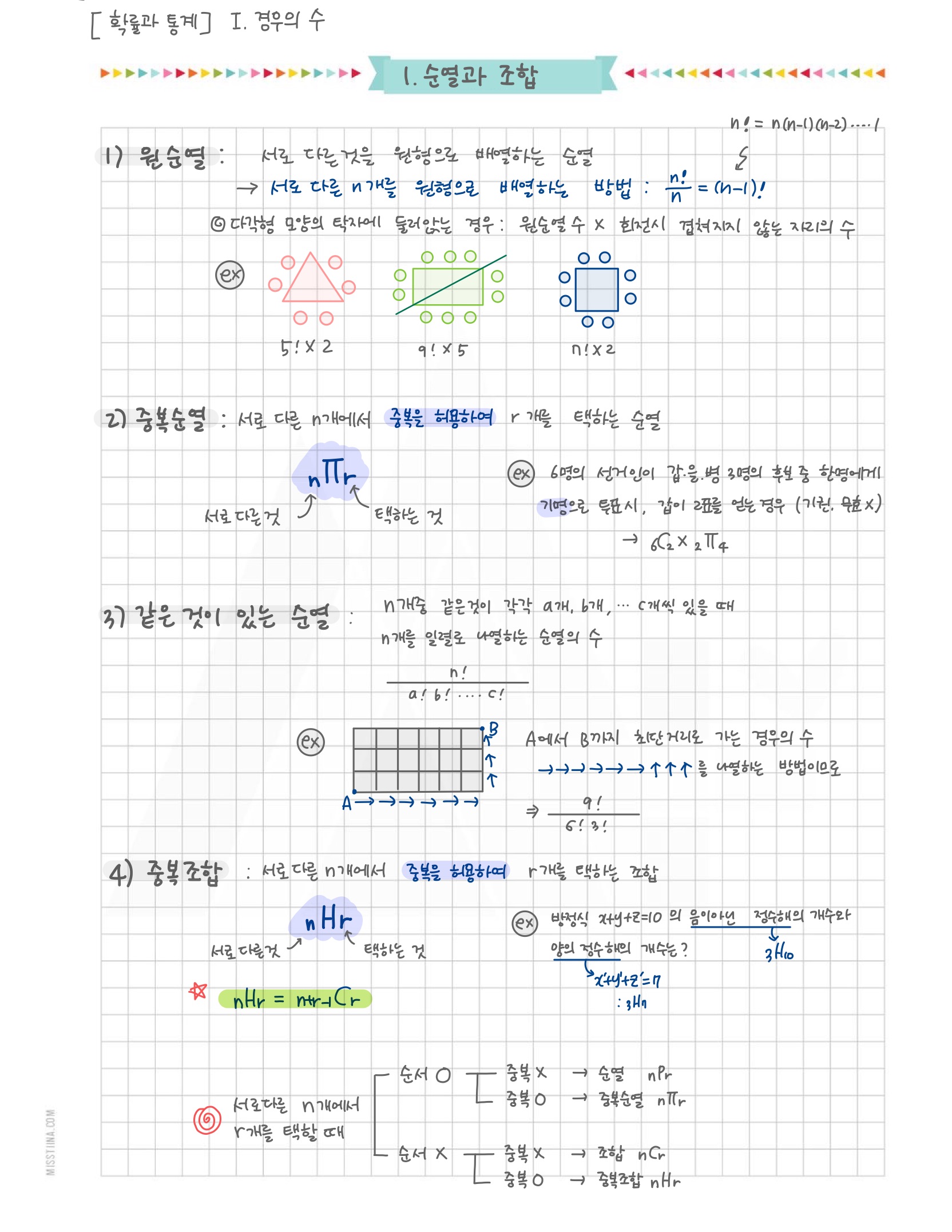 - 순열 : n개 중에 r개를 뽑아서 순서대로 나열하는 것