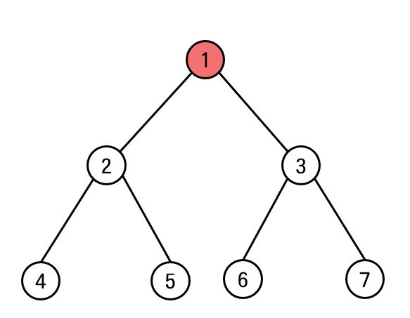 PostOrder : 4 - 5 - 2 - 6 - 7 - 3 - 1